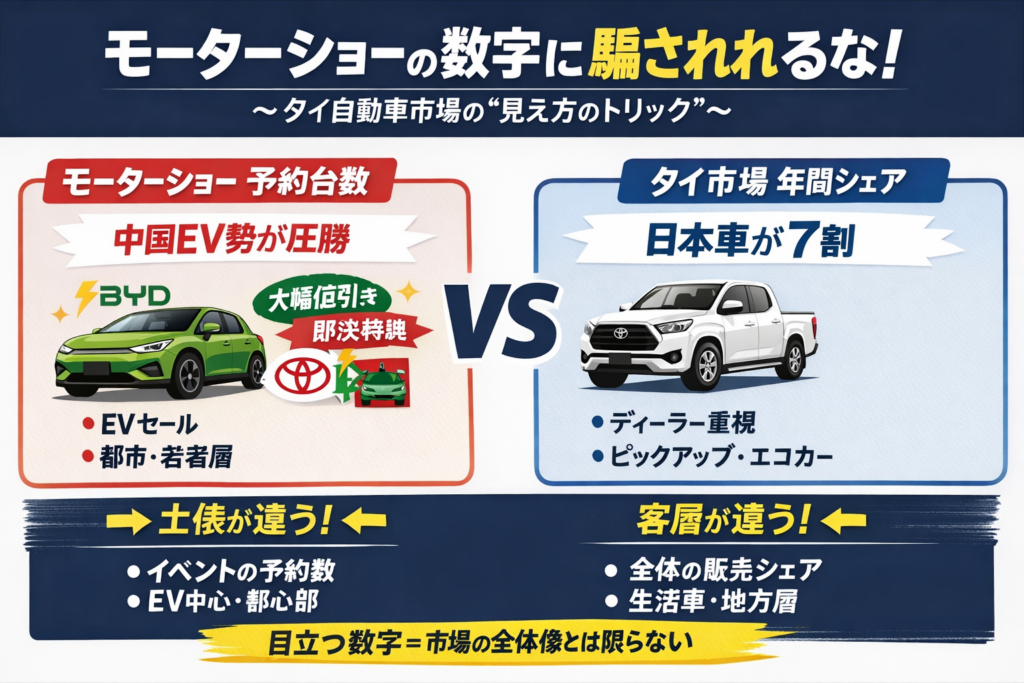 バンコクモーターショーで見えた「自動車勢力図の現在地」 2026年3月29日(土)、バンコク国際モーターショーに行ってきた。 結論から言うと、ここは単なる展示会ではなく、「日本 vs 中国」の最前線だった。 ■ 日本 vs 中国、主戦場は完全にタイ 会場を... -