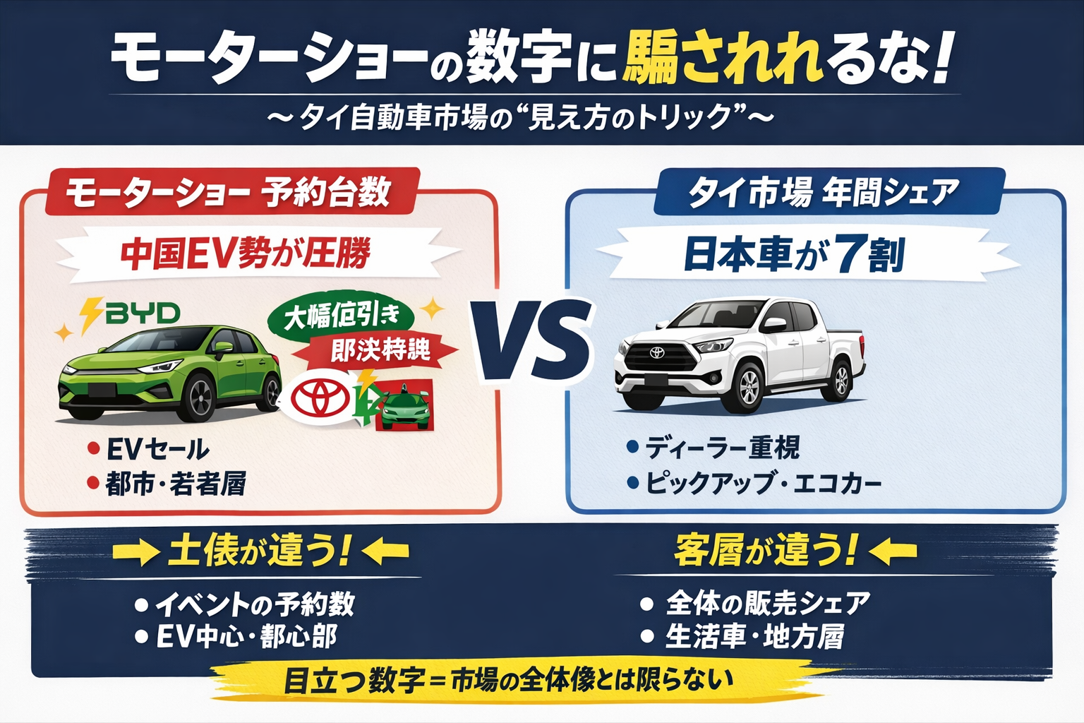 - 記事の数字 → モーターショーという“特殊な場”での受注